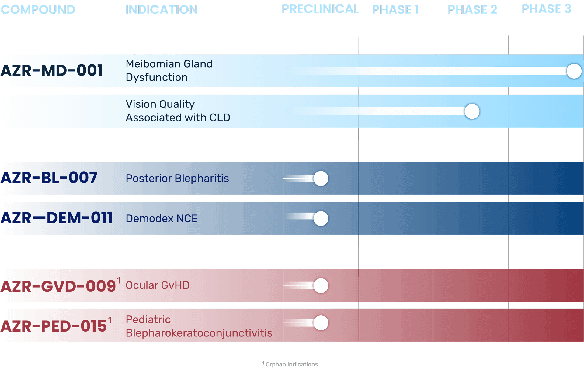 AZR-MD-001 is thought to have a multi-modal mechanism of action that treats the pathophysiology of MGD along with the resulting ocular surface symptoms
